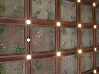 天井には高山植物、その下には野鳥が描かれていたり