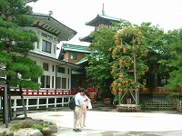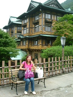 泊まった「花御殿」をバックにパチリ