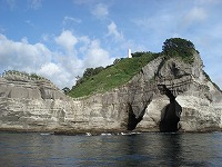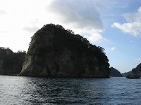 左:船からみた岩の1つなんだけど人がいたし上には灯台があったから登れるのかな?!